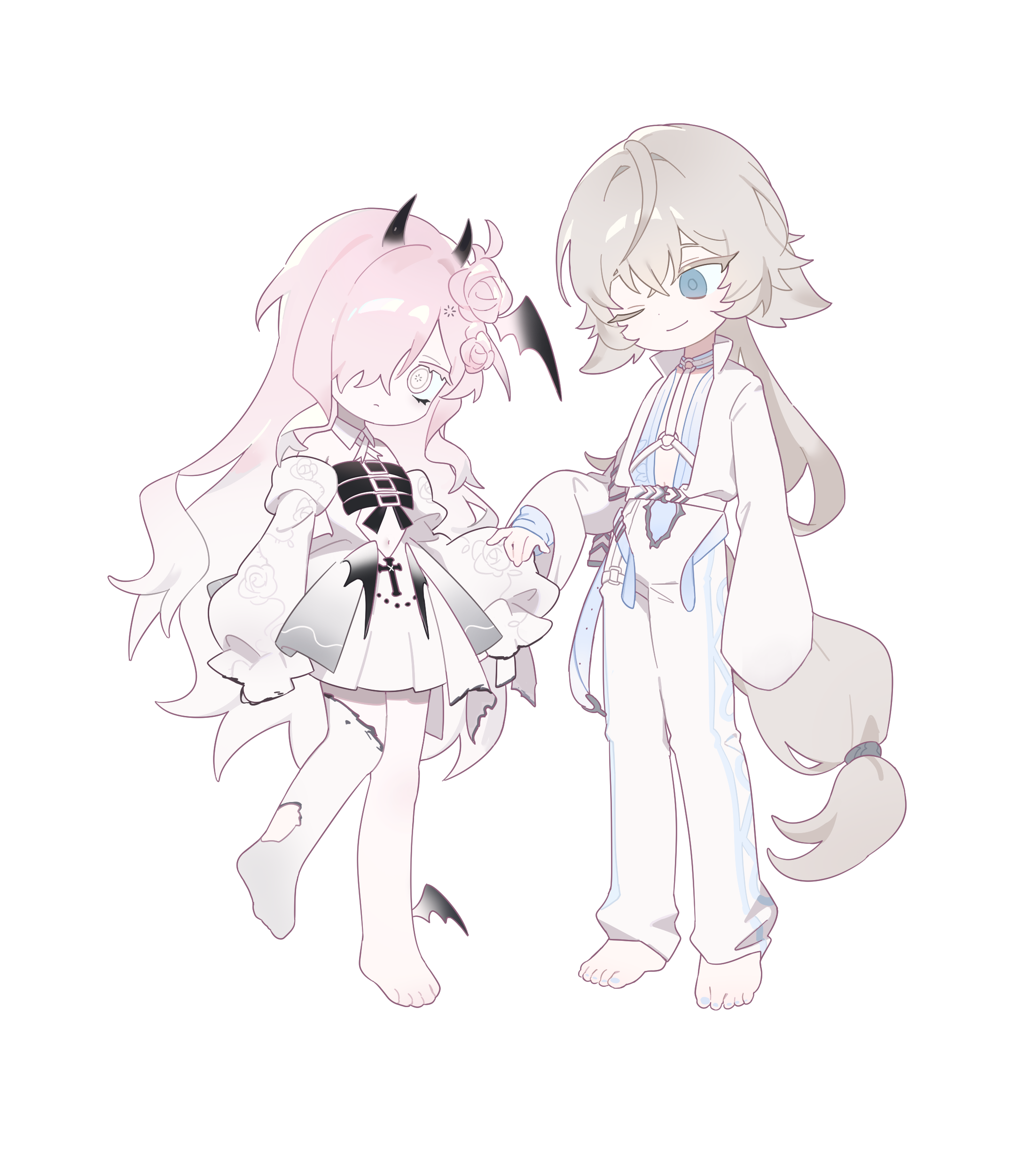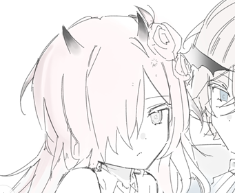 반투명 뿔과, 악마날개, 머리카락끝 검은 얼룩